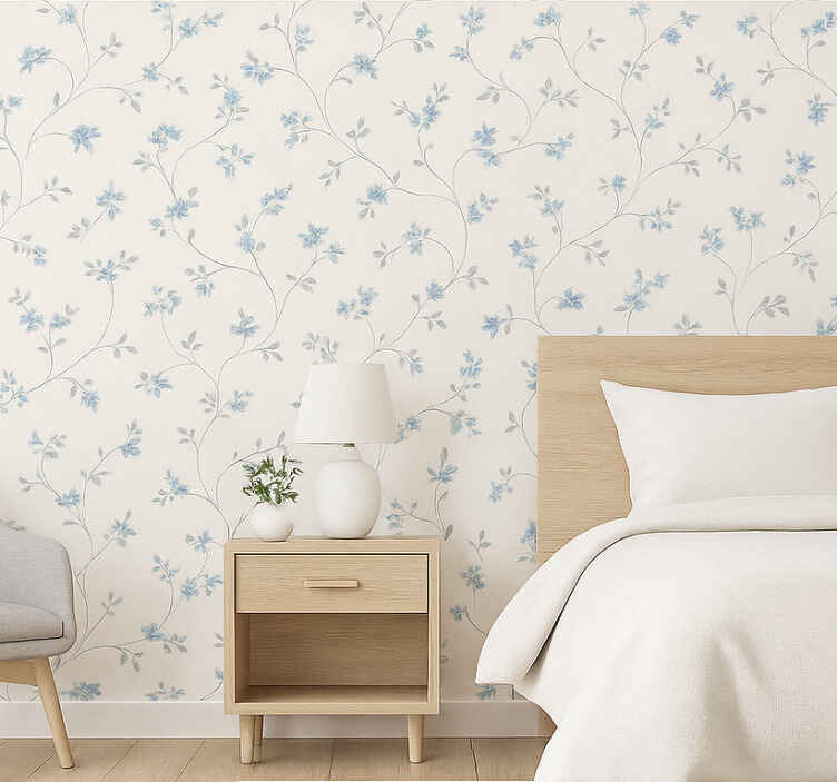 Carta da parati camera da letto prato blu classico
