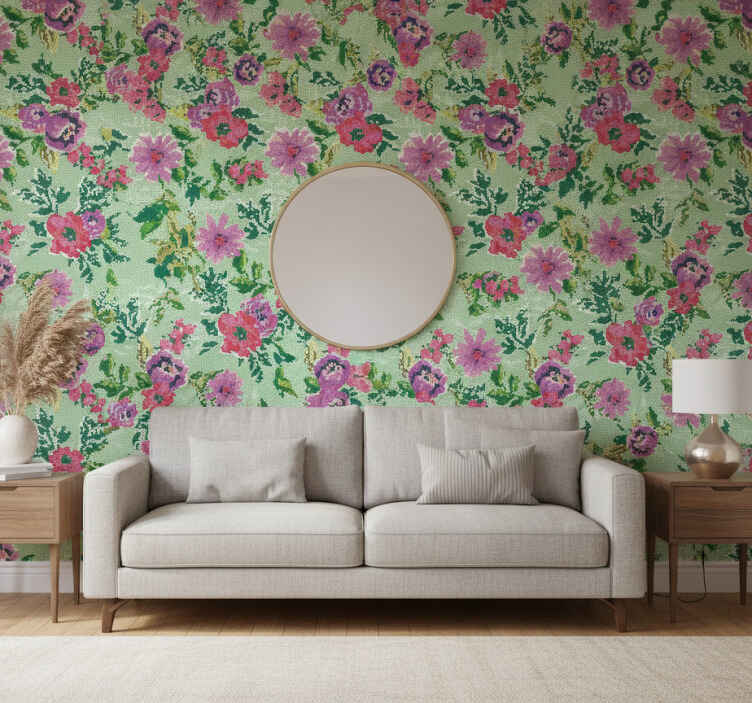 Carta da parati floreale motivo mosaico
