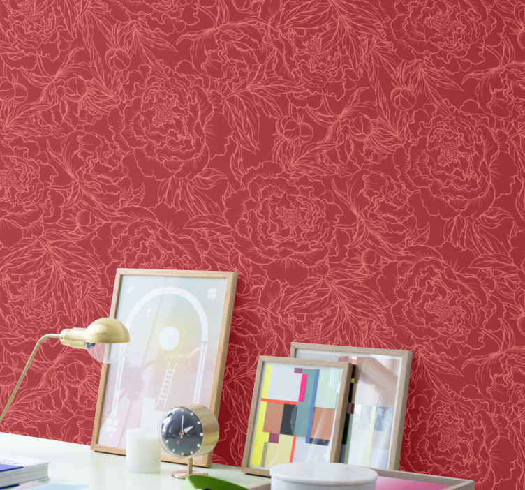 La carta da parati floreale motivo rose contorno rosso è un vero e proprio capolavoro di design che trasforma ogni ambiente in un angolo di paradiso! Con un delicato motivo di fiori, peonie e foglie, questo disegno inciso si distingue per il suo contorno rosso che aggiunge un tocco di eleganza e vivacità agli spazi. La combinazione di tonalità e dettagli floreali rende questa carta da parati un'ottima scelta per chi desidera un'atmosfera fresca e accogliente.