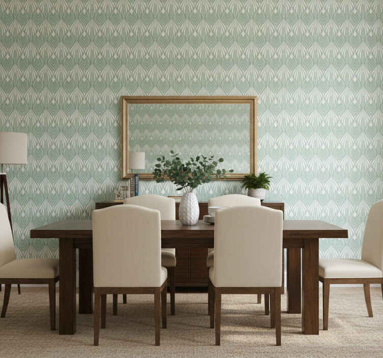 Carta da parati sala da pranzo foglie stilizzate verdi