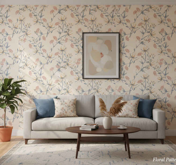 Carta da parati soggiorno con motivi floreali