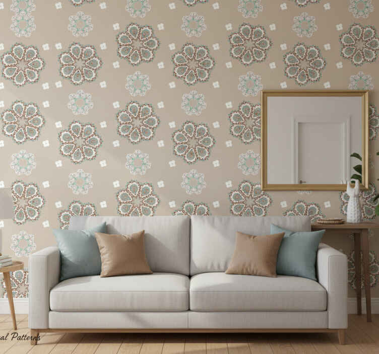 Carta da parati soggiorno motivi floreali eleganti