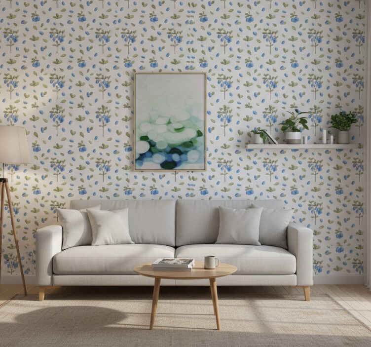 Carta da parati soggiorno motivo botanico blu