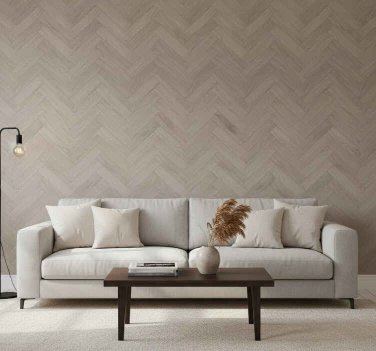 Carta da parati soggiorno motivo spina di pesce taupe