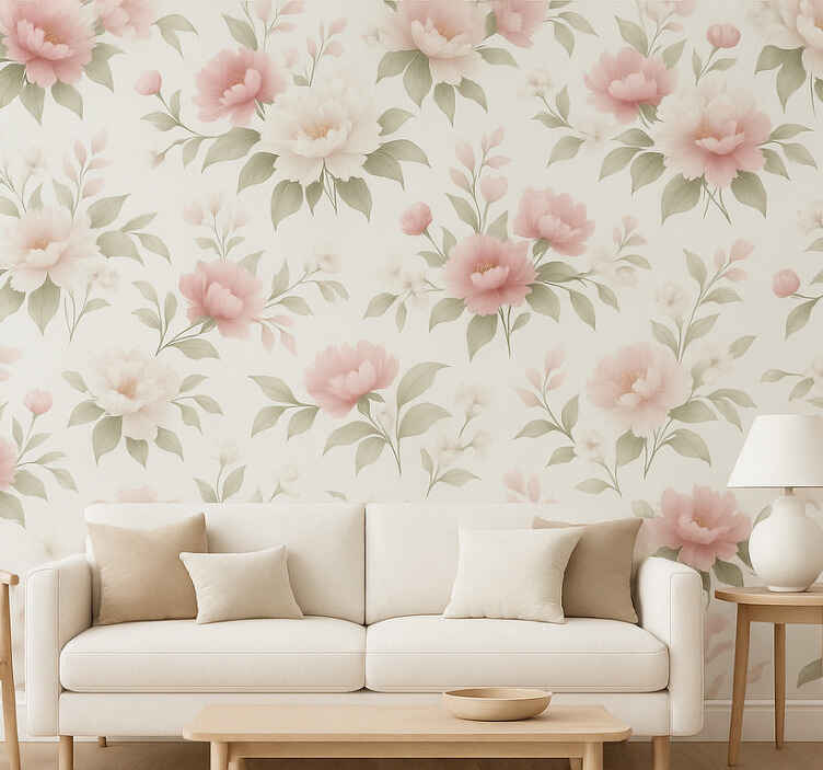 Carta da parati soggiorno peonia rosa bianca