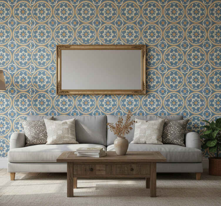 Riferimento: P13052La carta da parati soggiorno stile azulejo è un'opzione decorativa straordinaria che trasforma ogni spazio con il suo design affascinante e vivace. Caratterizzata da colori opachi eleganti, un motivo che richiama i tradizionali azulejos portoghesi e una texture in tessuto non tessuto, questa carta da parati non solo abbellisce ma conferisce anche una sensazione di calore e accoglienza al tuo soggiorno!