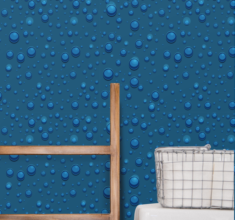 Scopri la nostra carta da parati bagno superficie delle gocce d'acqua, un design esclusivo che cattura l'essenza della freschezza! Con un effetto 3D che simula bolle d'acqua, questo modello si presenta in una tonalità blu vibrante su uno sfondo strutturato, perfetto per trasformare il tuo bagno in un'oasi di relax.