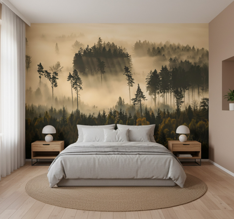 Carta da parati foresta nebbia mattutina eterea