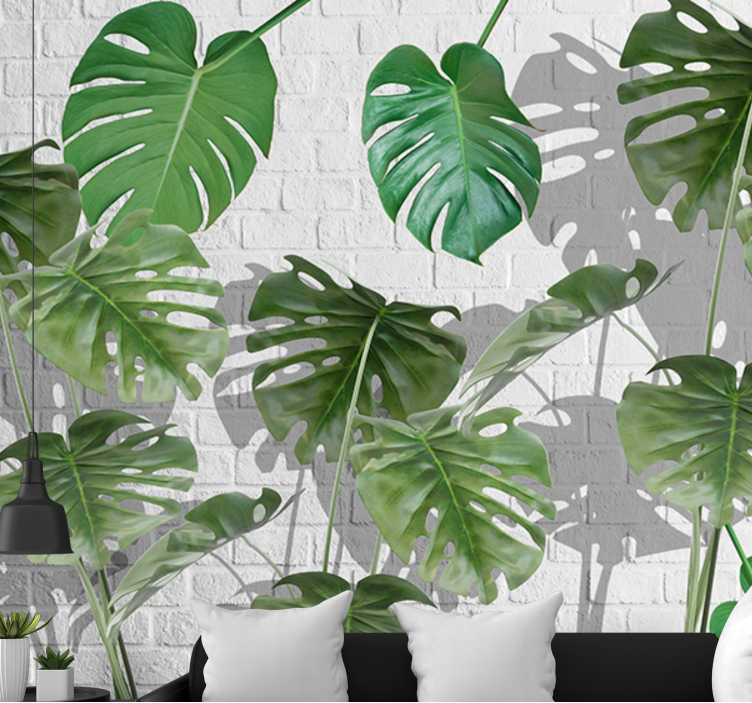 Riferimento: F12051Un'elegante esposizione di foglie di monstera è in evidenza su uno sfondo di mattoni bianchi. Le forme e i motivi intricati delle foglie creano un'atmosfera vivace e rinfrescante, aggiungendo un tocco di natura e vitalità a qualsiasi spazio.