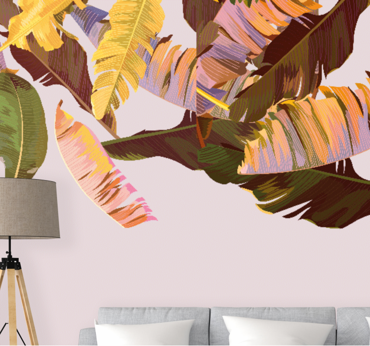 Scopri la nostra carta da parati natura motivi foglie esotiche, un'opera d'arte che trasforma ogni ambiente in un angolo di paradiso tropicale! Con un design straordinario che presenta foglie di banana e un fogliame esotico, questa illustrazione cattura la bellezza della natura con il suo stile audace e vivace. Ogni foglia sembra prendere vita, portando un tocco di freschezza e vitalità ai tuoi spazi.