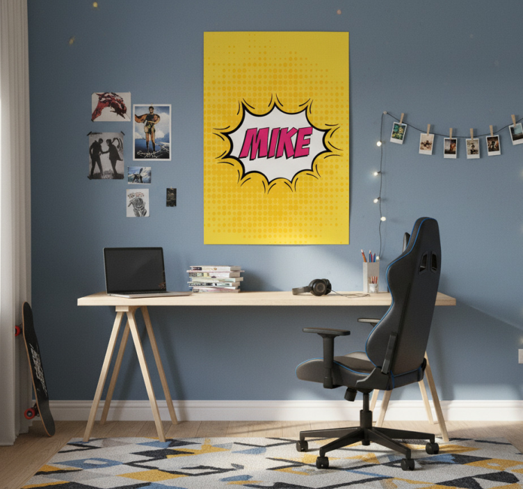 Riferimento: G726Scopri il nostro Poster camera ragazzi nome fumetto, un elemento di design che trasforma ogni stanza in un luogo di avventura e creatività! Questo poster è realizzato con una grammatura di 180g/m2, ha una finitura semiopaca senza riflessi e vanta un'alta intensità di colore che cattura l'attenzione. Perfetto per i giovani sognatori che amano i fumetti e vogliono esprimere la loro personalità attraverso la decorazione!