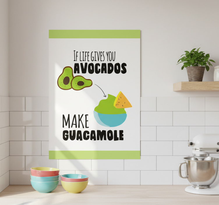 Il nostro Poster da cucina poster da cucina gioco di parole sull'avocado è perfetto per chi desidera rendere la propria cucina un luogo unico e stimolante! Con il suo design fresco e divertente, questo poster non solo abbellisce le pareti ma crea anche un'atmosfera accogliente e gioiosa. È l’ideale per ispirare la creatività culinaria e condividere momenti speciali con amici e famiglia!