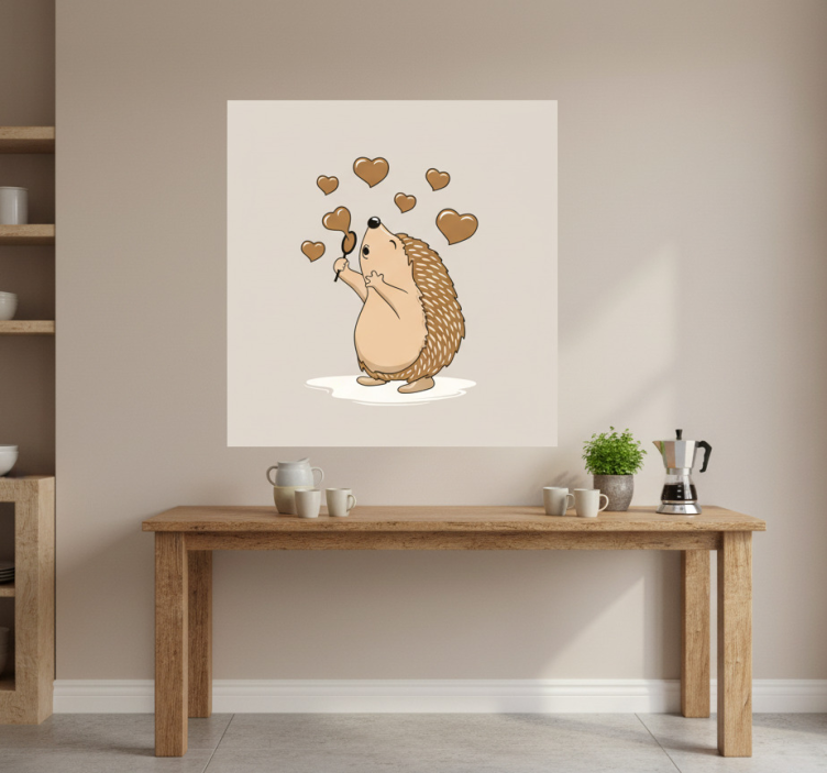 Riferimento: G601Scopri il nostro Poster da cucina riccio con cuori d'amore, un'opera d'arte grafica che trasmette gioia e calore! Questo design vivace presenta un adorabile riccio circondato da cuori d'amore, con colori intensi e una finitura semiopaca che assicura un aspetto elegante senza riflessi. Realizzato su un supporto di alta grammatura per garantire durata e qualità.