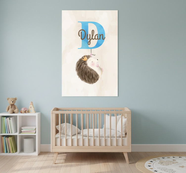 Poster d'arredo per la cameretta riccio con iniziale e nome