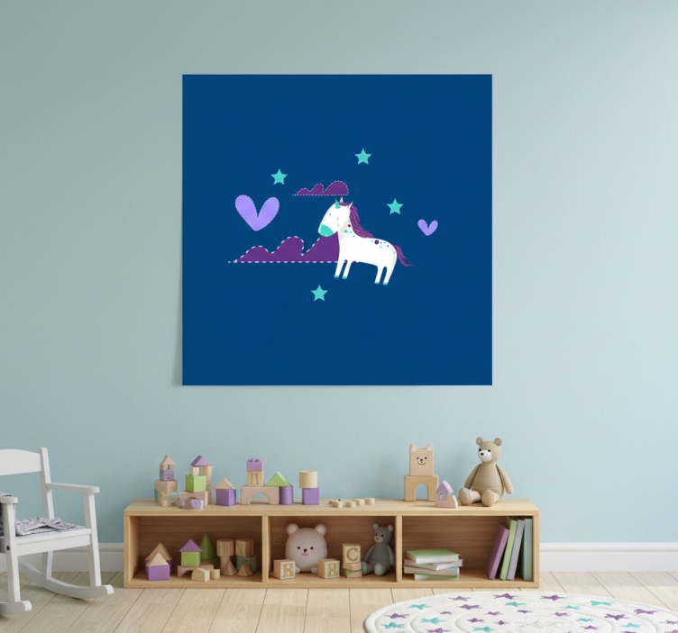 Poster d'arredo per la cameretta unicorni con nuvole e stelle
