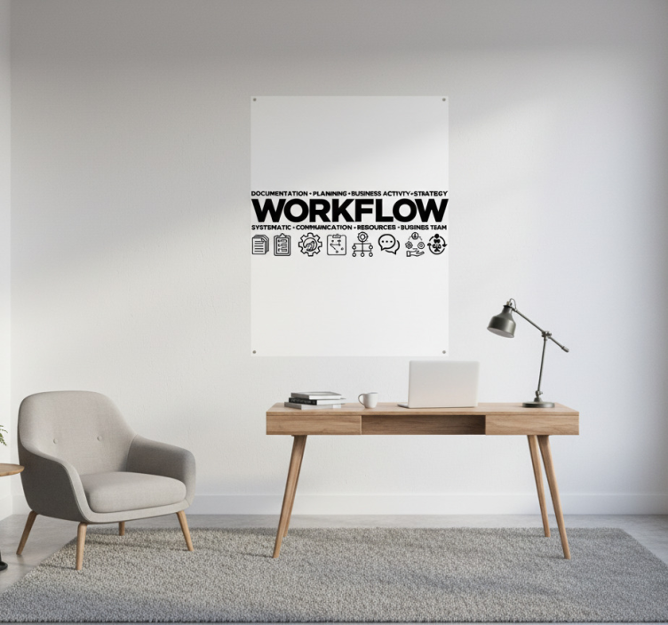 Applicare il poster per ufficio flusso di lavoro è semplice e veloce! L'opzione migliore è utilizzare nastro biadesivo sul retro del poster per una finitura pulita. Puoi anche incorniciarlo e applicarlo alla parete con adesivi più forti. In alternativa, usa puntine da disegno o blu-tack riutilizzabili per un'installazione flessibile e senza danni.