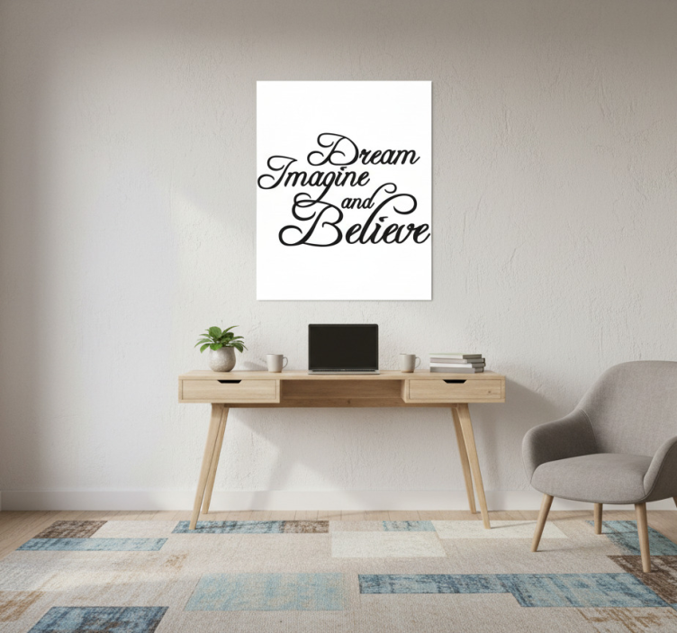 Il Poster per ufficio poster per ufficio sogna immagina e credi non è solo un elemento decorativo, ma una vera e propria fonte di ispirazione! Posizionato nella tua area di lavoro, questo poster incoraggia a sognare in grande, immaginare senza limiti e credere nelle proprie capacità! La sua presenza vivace e colorata trasforma qualsiasi ambiente, rendendolo più accogliente e stimolante! Non c'è modo migliore per ravvivare la tua giornata!