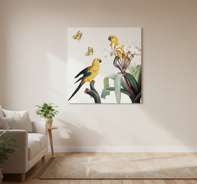 Il Poster salotto poster salotto pappagalli con fiori gialli e farfalle è la scelta perfetta per chi desidera dare un tocco di vivacità e originalità al proprio spazio. Con i suoi colori brillanti e il design accattivante, questo poster non solo abbellisce le pareti, ma crea anche un ambiente invitante e accogliente. È ideale per soggiorni, sale da pranzo o qualsiasi altro ambiente che necessiti di un elemento decorativo unico e stimolante!