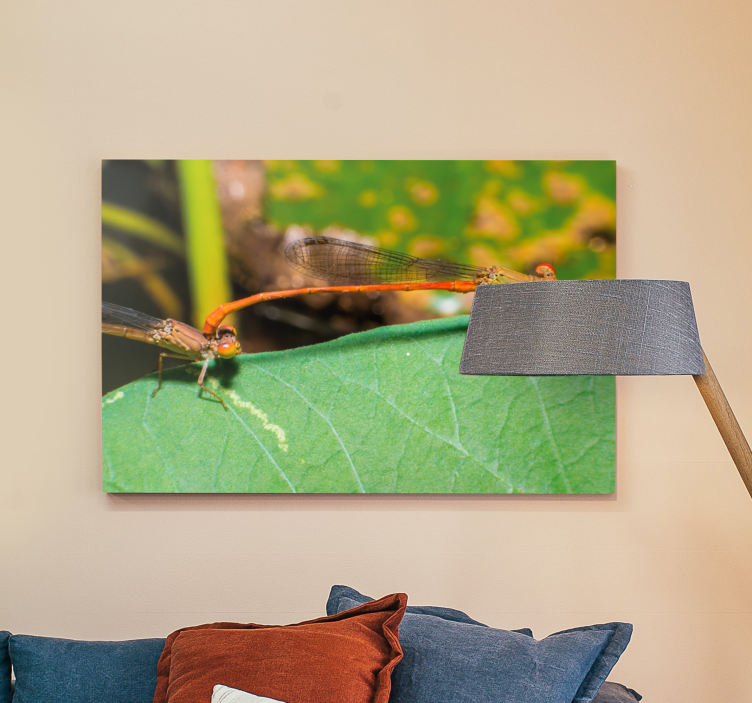 Il Dipinto con libellule coppia di libellule è un'opera d'arte incantevole che cattura l'essenza della natura in un design vibrante e dettagliato. Le libellule danzano tra le foglie verdi, creando un'atmosfera di serenità e bellezza. La fotografia ravvicinata di questi insetti in un contesto all'aperto invita a esplorare la meraviglia che ci circonda, rendendo questo dipinto una scelta ideale per chi ama la natura.