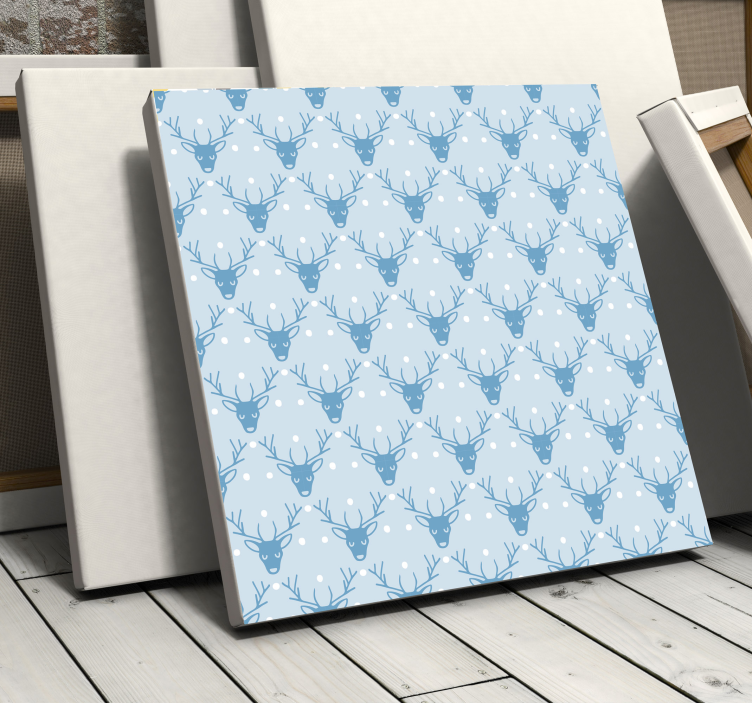 Scopri il nostro quadro con cervo motivo invernale, un'opera d'arte che cattura l'essenza della stagione fredda! Con un design che presenta un cervo maestoso circondato da teste e renne, il tutto incorniciato in un elegante blu che ricorda il cielo invernale e la neve che si posa delicatamente. Questa illustrazione è perfetta per celebrare il Natale, portando un tocco di magia e calore nel tuo ambiente.
