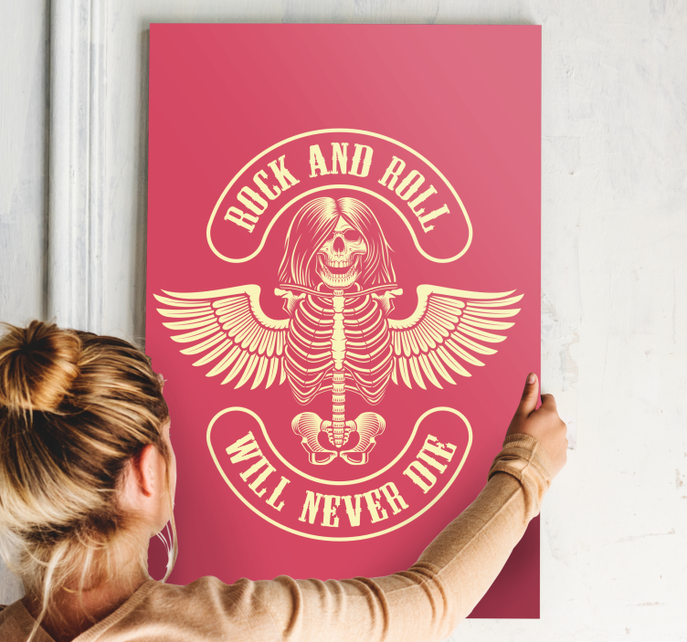 Scopri il nostro quadro vintage leggenda rock scheletrica, un'opera d'arte che cattura l'essenza della musica e della ribellione! Questo design straordinario presenta uno scheletro con ali che simboleggia il potere della musica e l'immortalità degli artisti. Con un cranio che esprime il messaggio "mai morire", il quadro riesce a fondere il mondo del rock con scritte evocative che parlano di leggende musicali. Perfetto per ogni amante della musica!