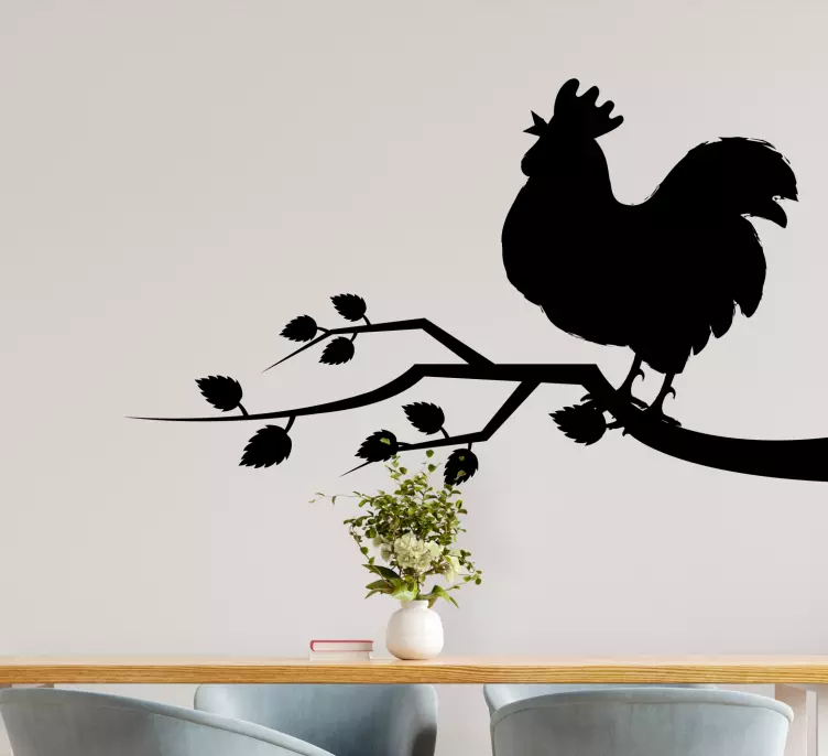 Adesivo animale gallo su ramo