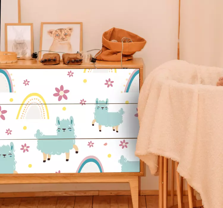 Scoprite l'adesivo concetto lama affascinante, un'opera d'arte che trasforma qualsiasi spazio con il suo design giocoso e colorato! Questo straordinario adesivo presenta una lama vibrante decorata da arcobaleni e fiori, creando un'illustrazione che cattura l'attenzione e regala un tocco di vivacità all'arredamento. Il suo modello unico e la finitura satinata non solo esaltano i colori, ma permettono di apprezzare la bellezza dell'adesivo senza riflessi fastidiosi.
