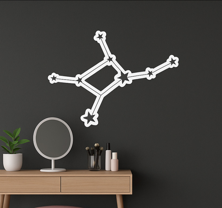 Riferimento: A54535Scopri il nostro adesivo da muro costellazione vergine in bianco, un elemento decorativo unico che trasforma qualsiasi ambiente con il suo design elegante e sofisticato. Caratterizzato da una finitura satinata che non riflette la luce, questo adesivo offre un'eccellente intensità di colore e permette di apprezzare meglio il suo aspetto senza lucentezza, rendendolo perfetto per creare atmosfere suggestive e accoglienti.