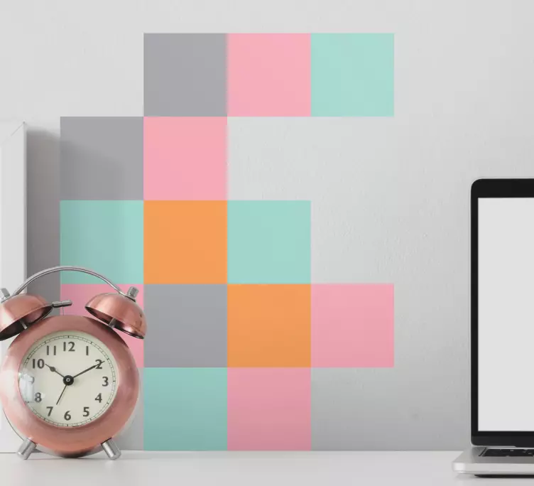 Scopri il nostro adesivo decorativo composizione geometrica colorata, un elemento d'arredo dal design geometrico, astratto e moderno! Le sue forme quadrate e le piazze dai colori vivaci lo rendono un'opzione creativa per dare nuova vita a qualsiasi ambiente. Un vero tocco di originalità e stile per i tuoi spazi!