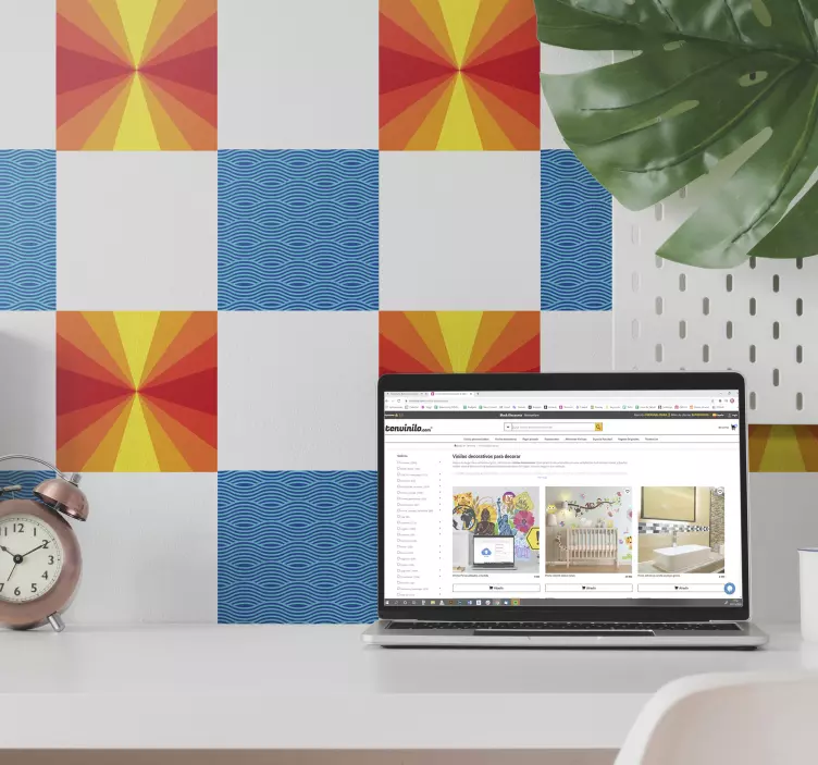 Scopri il nostro adesivo decorativo composizioni geometriche vivaci, un'opera che trasforma gli spazi con il suo design moderno e astratto! Le sue forme quadrate e le piazze si intrecciano in un vibrante gioco di colori, evocando il calore di un tramonto e la fluidità delle onde. Questo modello geometrico è l'ideale per chi cerca un tocco di originalità e freschezza per ogni ambiente!