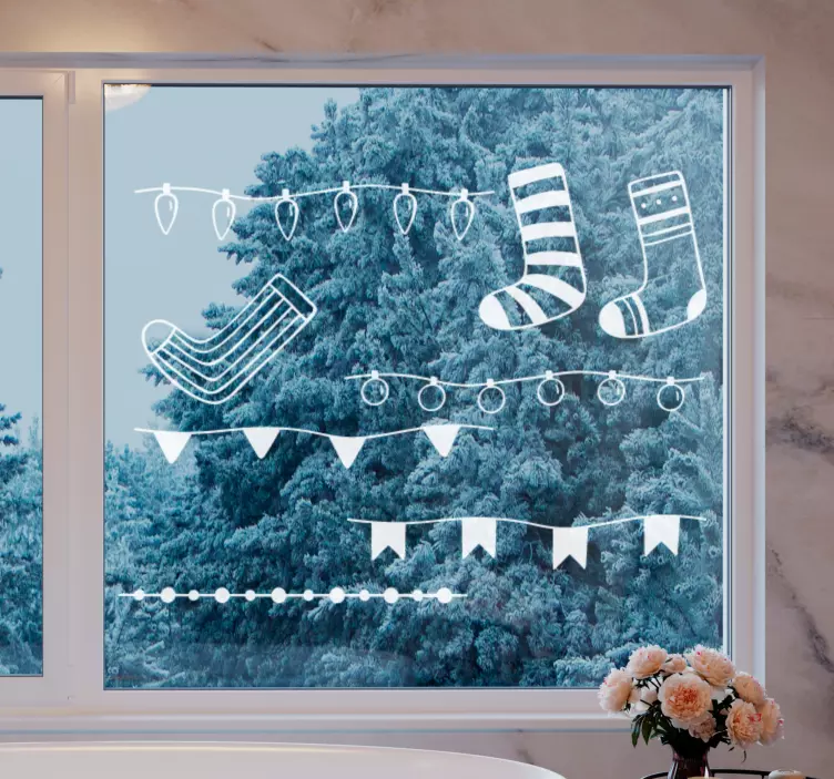 Scopri il nostro adesivo espositore di calze natalizie, un prodotto unico dal design affascinante! Con immagini di calze, calze autoreggenti, ornamenti festivi e ghirlande illuminate, questo adesivo trasforma ogni ambiente in un angolo incantato di Natale. Le luci e gli striscioni rendono il tuo spazio accogliente e festoso, perfetto per accogliere amici e familiari durante le festività!