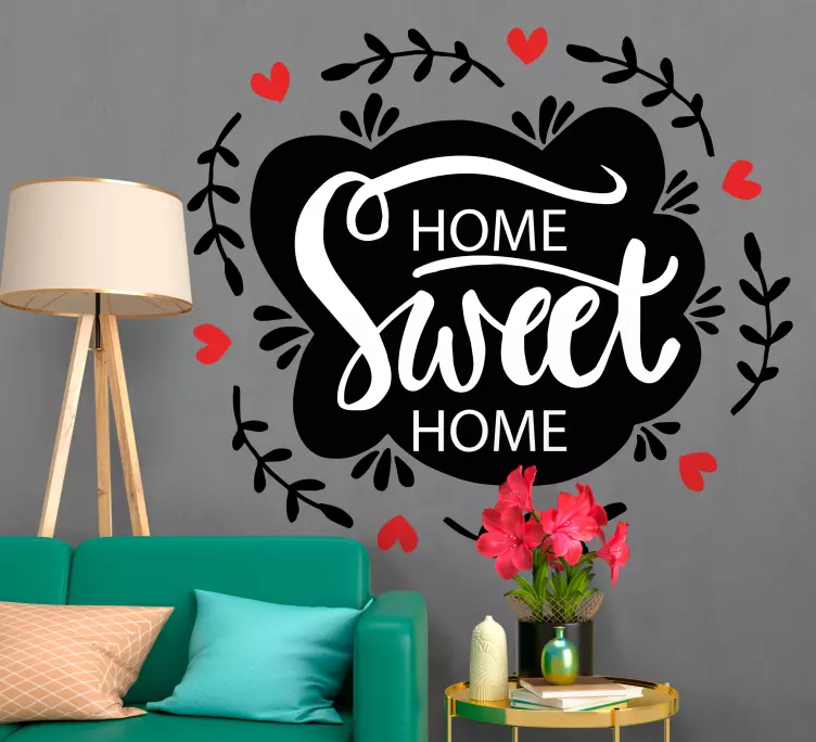 Riferimento: A48557La frase 'Home Sweet Home' è splendidamente rappresentata con una tipografia elegante circondata da affascinanti viti e cuori. Questa espressione trasmette calore e comfort, perfetta per creare un'atmosfera accogliente in qualsiasi spazio abitativo.