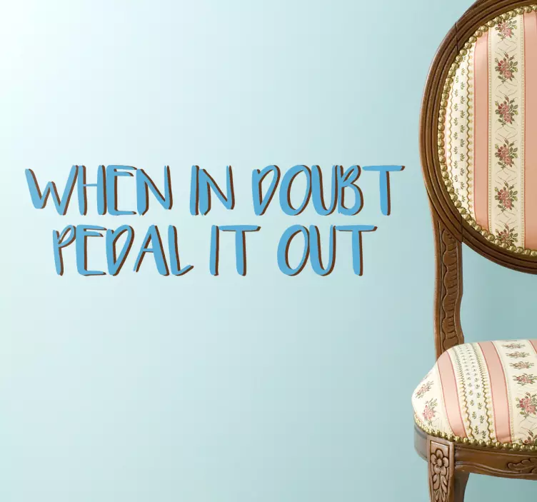 Applicare il nostro adesivo murale frase celebre adesivo frase celebre quando hai dubbi pedala fuori è semplicissimo! Assicurati che la superficie sia pulita e asciutta, poi stacca il retro dell'adesivo e posizionalo con attenzione. Per un'applicazione perfetta, puoi utilizzare una spatola per eliminare eventuali bolle d'aria. Ed ecco fatto: il tuo spazio avrà subito un aspetto fresco e motivante!