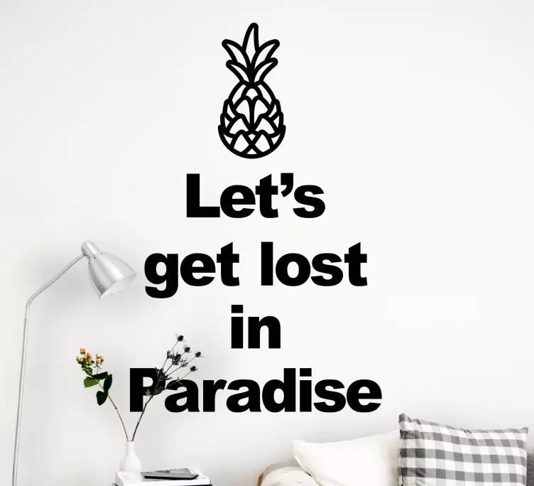 Scopri il nostro Adesivo località arte citazione ananas, un prodotto unico che porta un tocco di freschezza e originalità nel tuo spazio! Il design presenta un meraviglioso ananas accompagnato da frasi ispiratrici che invitano a riflettere sulla bellezza della vita e sull'importanza di non lasciarsi andare. Con scritte eleganti e colori vivaci, questo adesivo è perfetto per decorare ogni angolo della tua casa, portando un po' di Paradiso e ispirazione nella tua quotidianità!