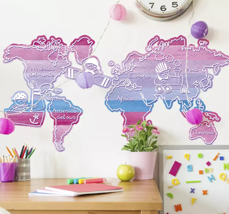 Scopri il nostro adesivo località avventura sulla mappa del mondo, un prodotto unico che trasforma la stanza dei bambini in un vivace angolo di esplorazione! Con un design colorato e giocoso, realizzato in stile acquerello su carta geografica, questo adesivo non è solo decorativo ma anche educativo, stimolando l'interesse dei più piccoli per la geografia attraverso un approccio interattivo e divertente!
