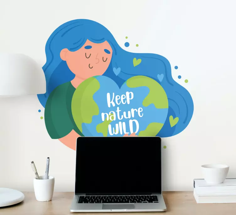Riferimento: A48040Una rappresentazione che sottolinea l'importanza di prendersi cura del nostro pianeta, inquadrata da un personaggio che tiene teneramente un globo a forma di cuore. La frase incoraggia un impegno per preservare gli aspetti selvaggi della natura, evidenziando l'amore e la connessione con la terra.