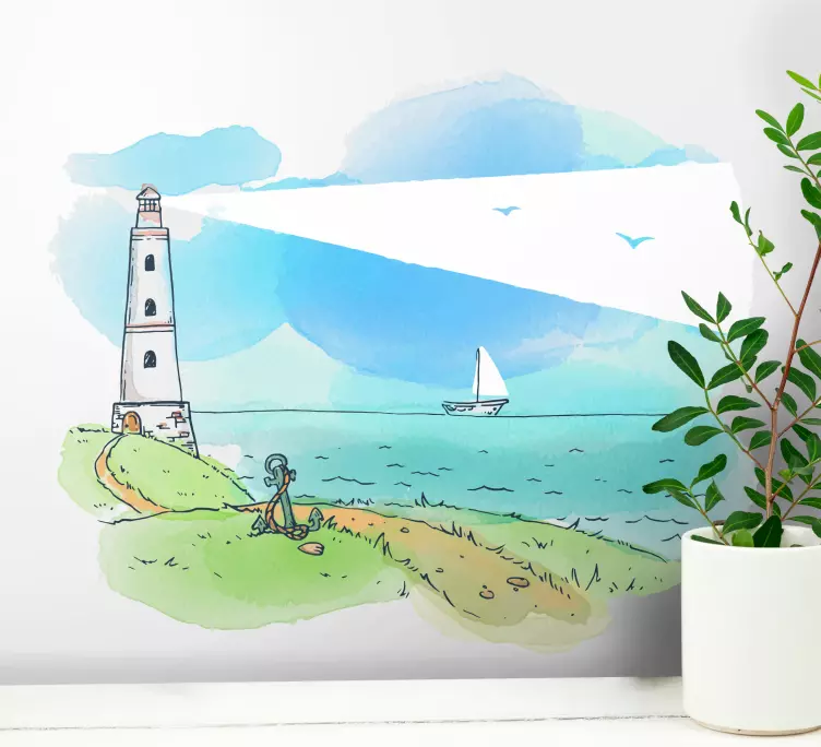 Scopri il nostro Adesivo località scena faro costiero, un'opera d'arte adesiva che cattura l'essenza del mare con la sua illustrazione vivace di un faro, un panorama marino incantevole, e l'emozione di andare in barca immersi nella natura. Questo paesaggio evoca la magia dell'oceano e offre un percorso visivo che trasforma ogni spazio in un luogo da sogno!