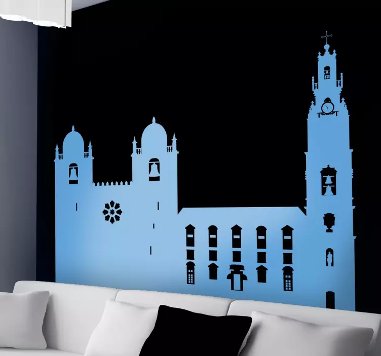 Scopri la bellezza dell'arte decorativa con il nostro adesivo località silhouette di edifici storici, un design che celebra la cattedrale e l'architettura storica del Portogallo. Questa silhouette si erge maestosa come un punto di riferimento della cultura locale, dando un tocco unico e affascinante a qualsiasi città tu desideri rappresentare!