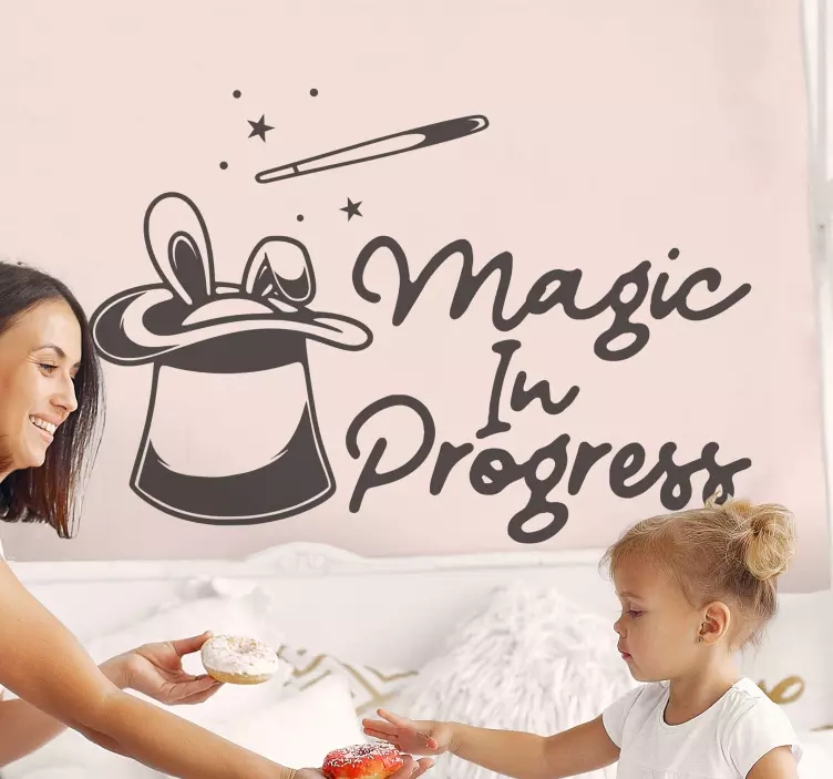 Scopri il nostro Adesivo murale bambini magia in corso, un design incantevole che porta un tocco di magia e divertimento nella stanza dei tuoi piccoli! Con scritte in calligrafia e elementi giocosi come un cappello e un coniglietto, questo adesivo trasforma qualsiasi ambiente in un luogo di progresso e meraviglia. Le stelle brillano nel design, creando un’atmosfera che stimola la fantasia e l’immaginazione dei bambini!