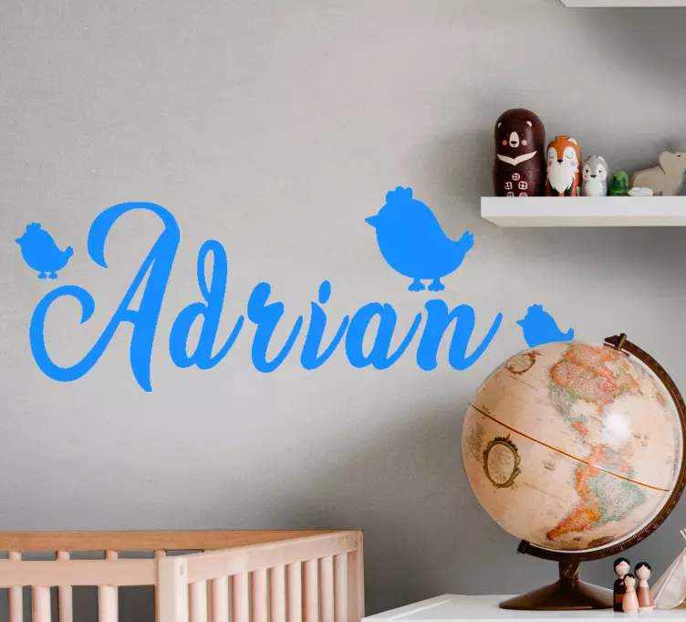 Adesivo murale bambini nome personalizzato con uccelli