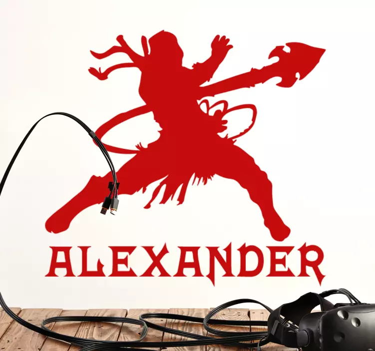 Scopri il nostro adesivo murale personalizzazione silhouette guerriero, un design accattivante che rappresenta un guerriero in una silhouette dinamica, ispirata ai personaggi dei video giochi. Grazie alla personalizzazione del nome e al costume scelto, questo adesivo diventa un elemento unico e personale per decorare le tue stanze con un tocco di azione!