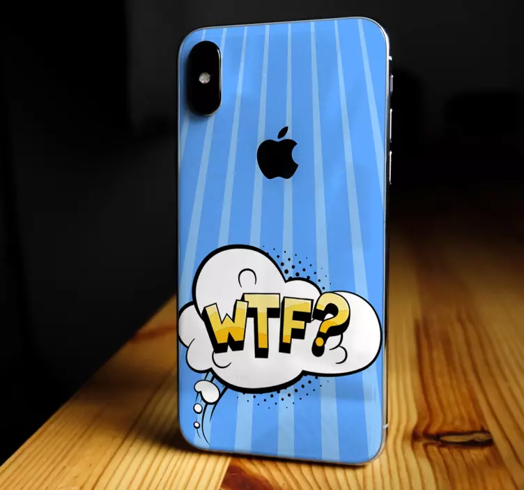 Riferimento: A48535Un design vivace presenta un fumetto con il testo 'WTF?'. La tipografia giocosa risalta su uno sfondo azzurro chiaro decorato con strisce verticali, creando un'estetica moderna che può migliorare l'espressione personale.