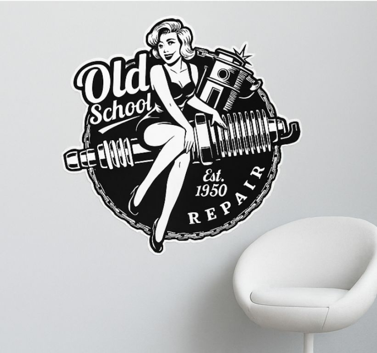Adesivo murale rugby pinup vintage garage
