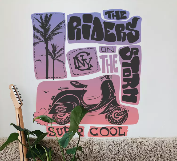 Scopri il nostro Adesivo murale rugby scooter palme, un design che cattura l'essenza dell'estate con scooter, testo, scritti e vibrazioni estive circondati da palme e musica! Questo adesivo trasforma ogni spazio in un'ode al trasporto e alla libertà, regalando un tocco vivace e originale a qualsiasi ambiente.