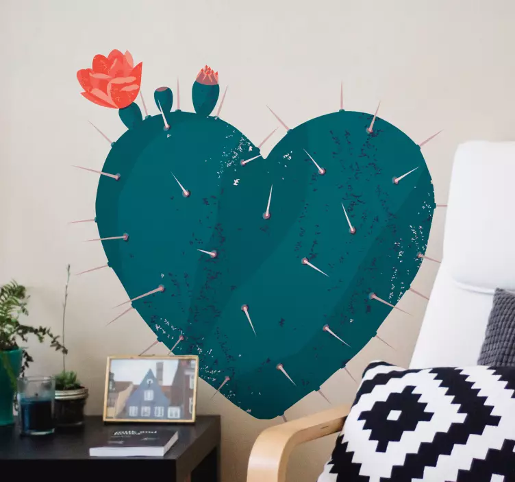 Scopri la bellezza unica dell'adesivo natura cactus a forma di cuore, un'illustrazione affascinante che unisce la dolcezza di un cuore alla freschezza della natura. Con spine delicate e fiori rosa che sbocciano, questo design porta la vita e la gioia in ogni ambiente, rendendo ogni spazio più accogliente e vivace!