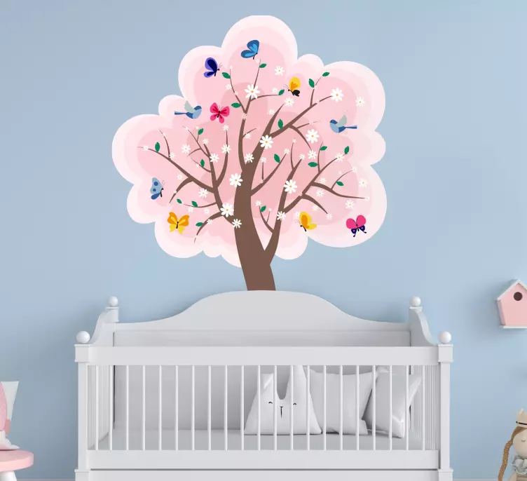 Scopri il nostro adesivo natura scena albero in fiore, un'illustrazione vibrante che cattura la bellezza della primavera. Questo design presenta un albero maestoso pieni di fiori rosa e farfalle colorate, portando la freschezza e la gioia della natura direttamente nel tuo spazio. I colori vivaci di questo prodotto non solo abbelliranno le tue pareti, ma creeranno anche un'atmosfera serena e accogliente!