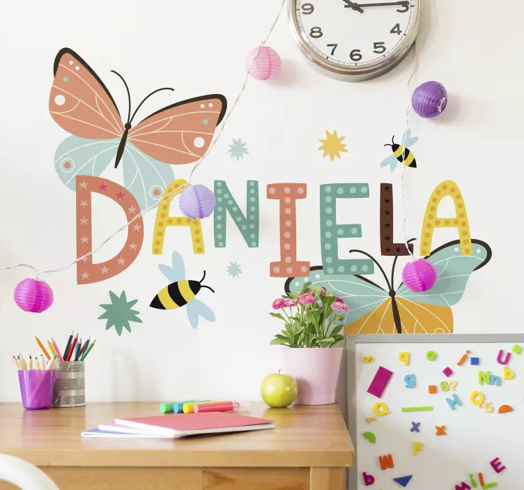 Il nostro adesivo neonato farfalle con nome personalizzato è un'opera d'arte colorata che trasforma ogni ambiente in un luogo vivace e gioioso! Con un design che presenta meravigliose farfalle in tonalità vivaci, questo adesivo celebra la natura e il divertimento tipico dei più piccoli. Il nome del tuo bambino sarà splendidamente integrato in questo costume di farfalle, rendendo l'atmosfera giovanile e allegra!