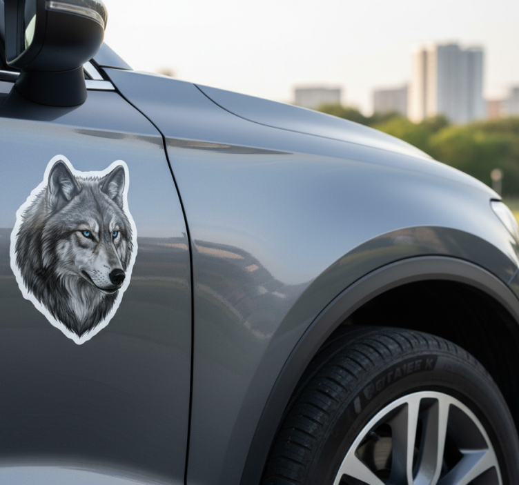 Adesivo per auto lupo dagli occhi blu selvaggio