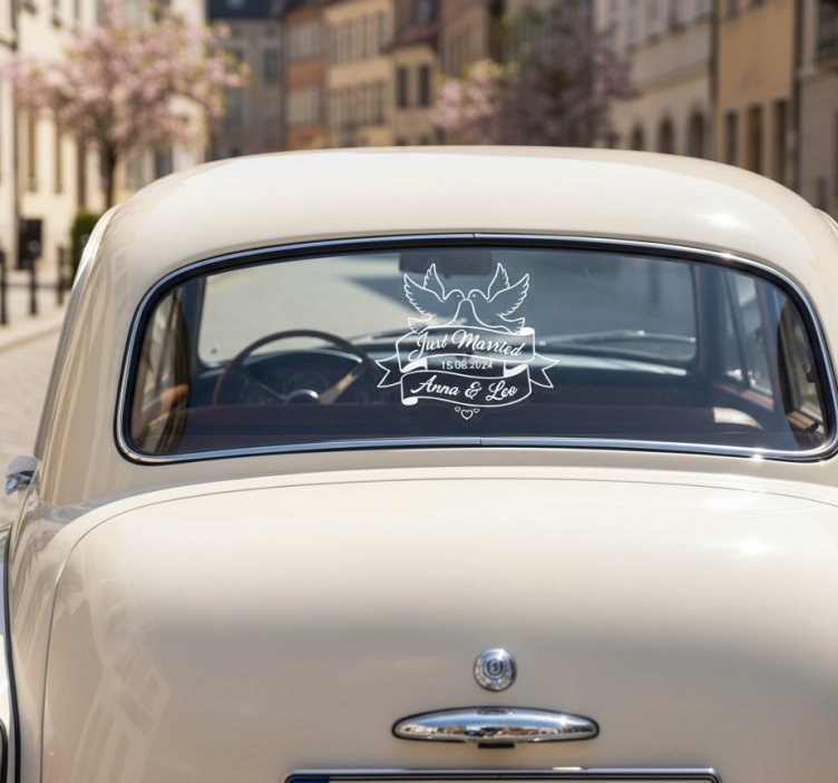 Adesivo per auto piccioni innamorati appena sposati