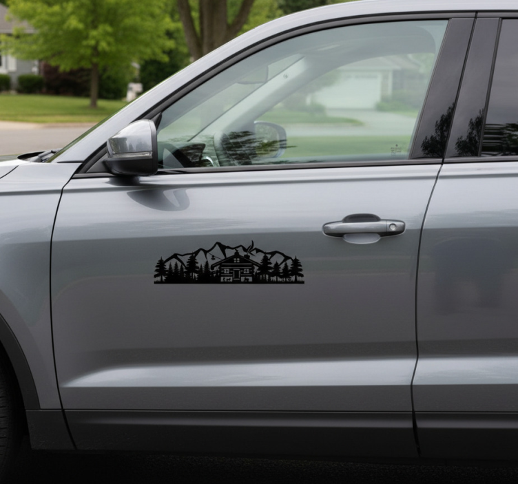Adesivo per auto silhouette di cabin in montagna